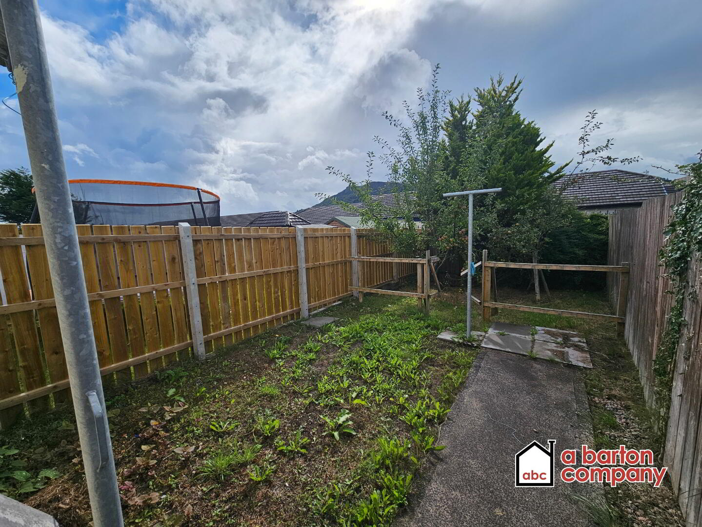 Fully enclosed. Concrete pathway. Drying line posts.